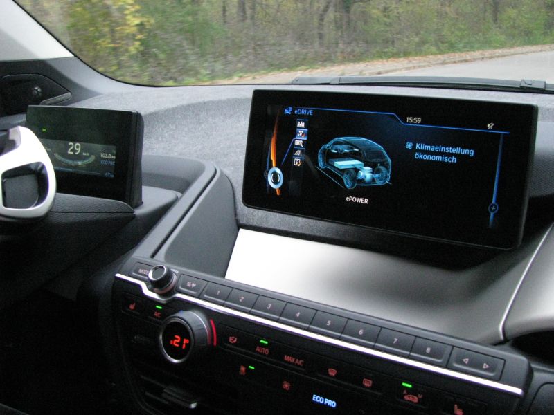 Als besten Vergleich für das Fahrverhalten sehe ich eine Carrerabahn, sobald ich dort den Drücker los lasse, bleibt das Fahrzeug stehen. So ähnlich funktioniert auch der i3 – mit dem Pluspunkt, dass bei diesem Bremsvorgang Energie wieder in die Batterie zurück fließt.
